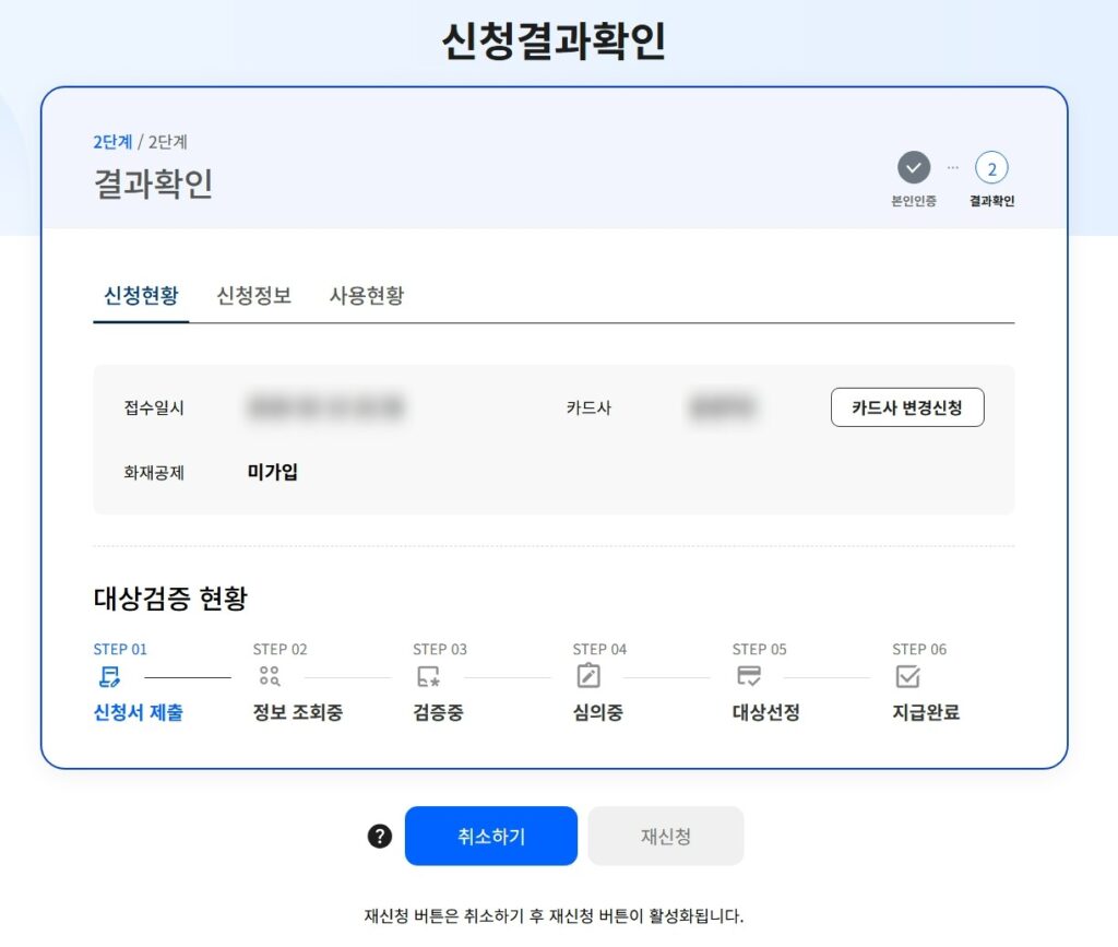 [신청결과 확인 화면에서는 신청현황과, 신청정보, 사용현황 등을 모두 확인이 가능하답니다]